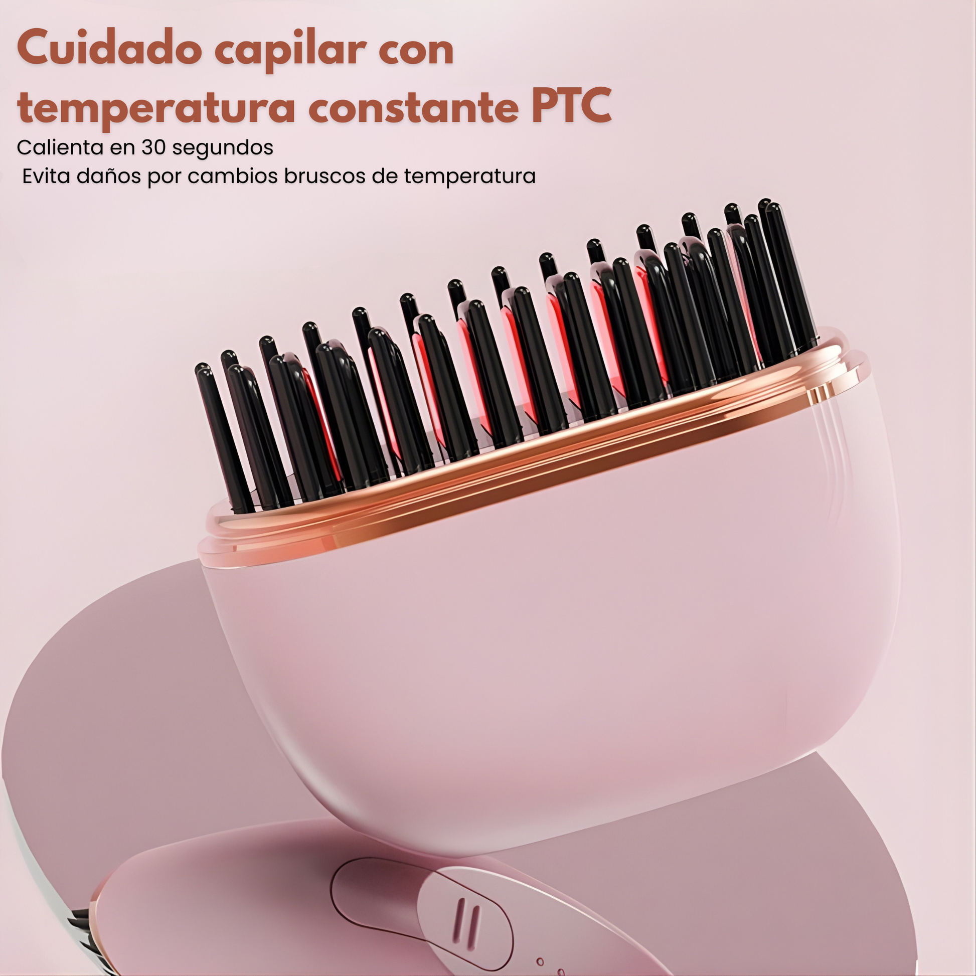 Mini plancha de pelo y cepillo alisador portátil recargable con calentamiento rápido y 3 temperaturas ajustables.